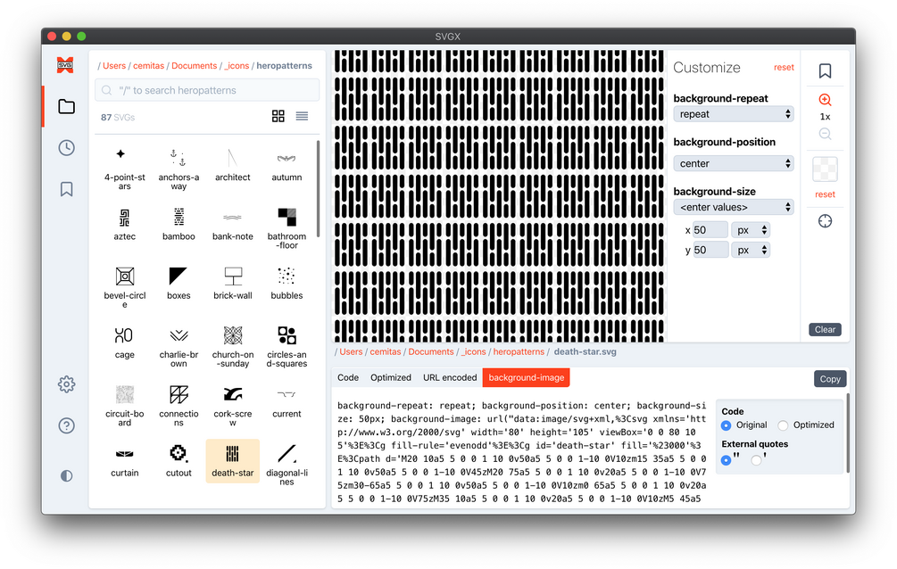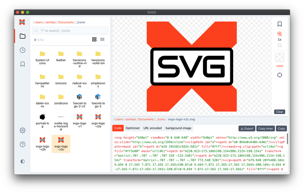 SVGX is a desktop SVG asset manager built with Electron, Svelte, TailwindCSS.